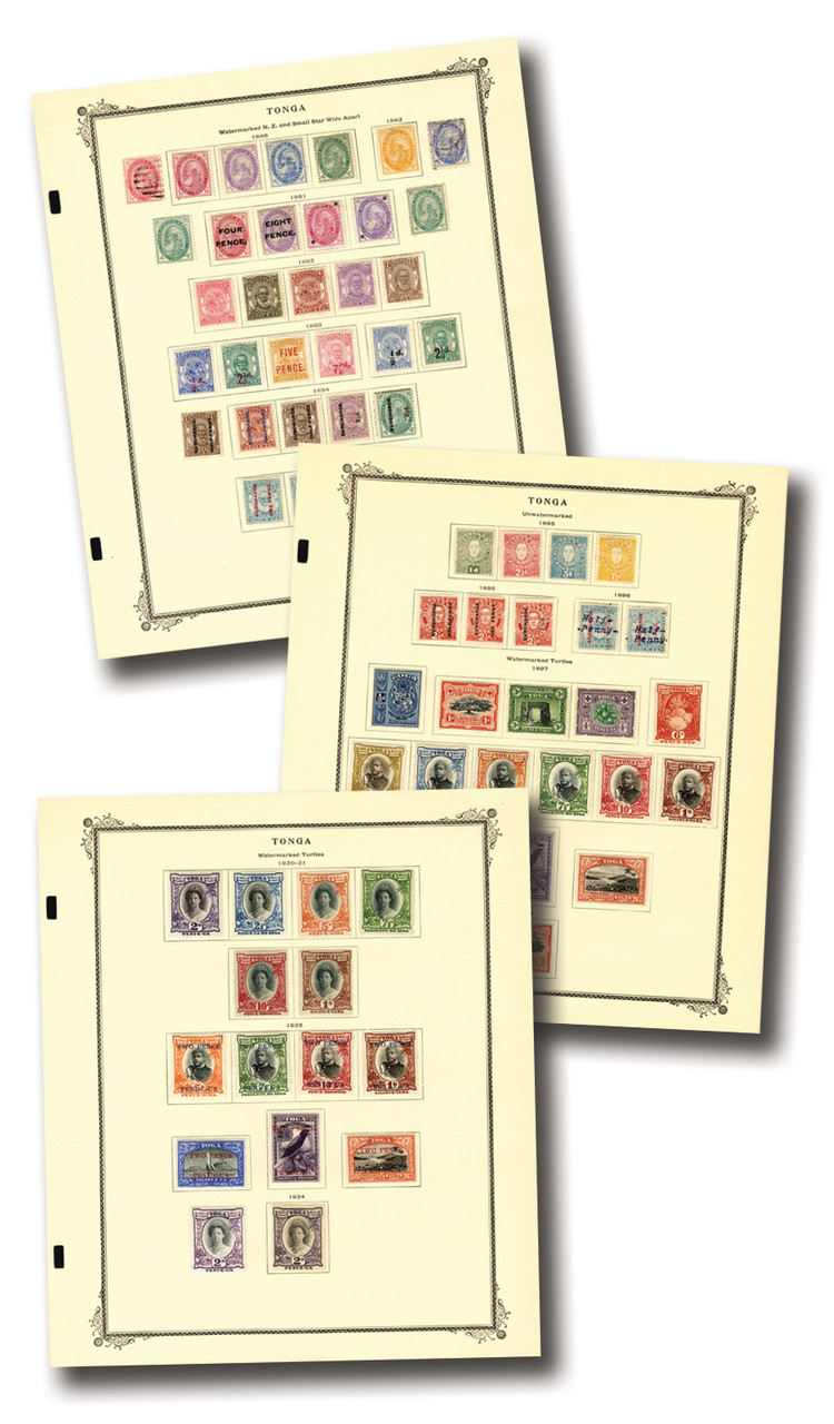 140+ mint Tonga stamps, 1886-1961. On album pages. Scott Catalogue value $3,126.