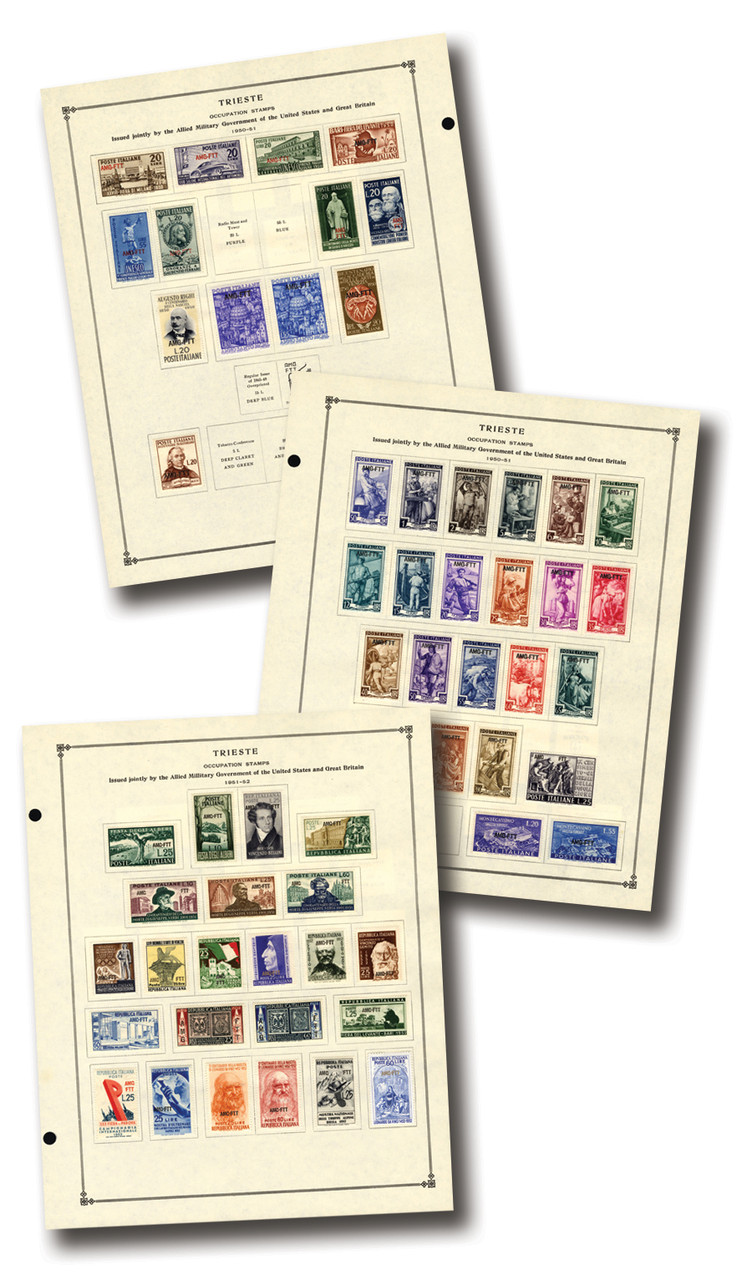 275+ Free Territory of Trieste stamps, 1947-1949. In Scott album pages with interleavings. Scott Catalogue value $1,365.