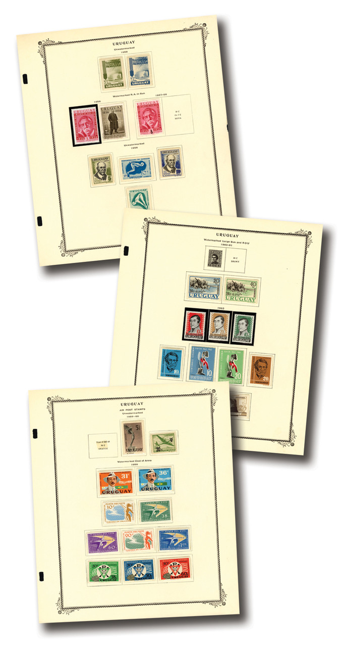 120+ Uruguay stamps, 1956-67. In pages. Scott Catalogue value $73.