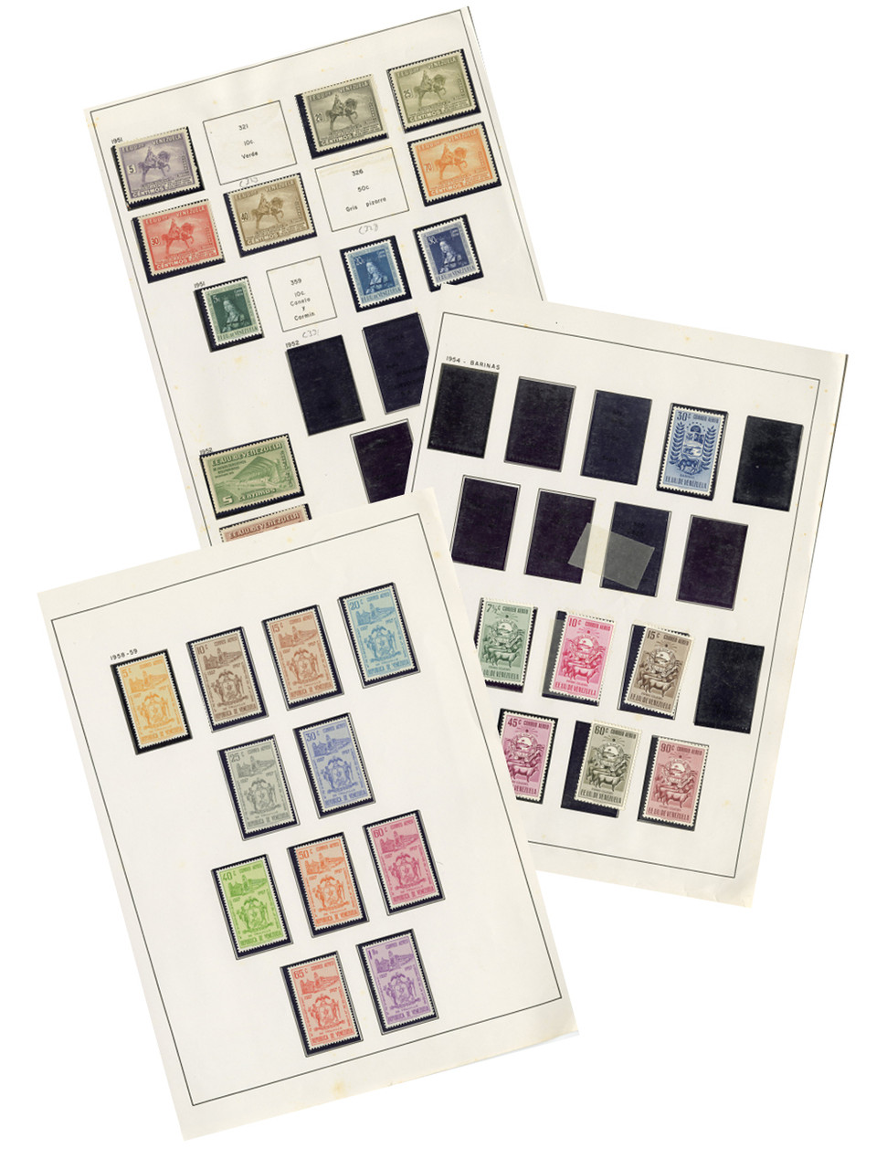 Over 200 mint and used Venezuela stamps, issued between 1952 and 1962. In album pages.