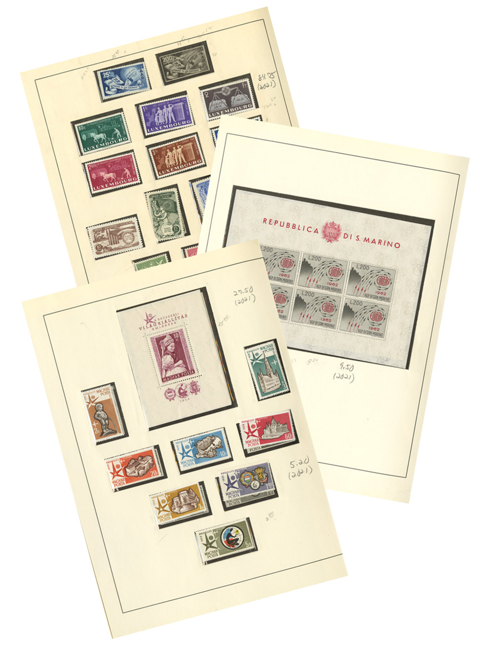 Over 475 stamps from countries throughout Europe. Issued between 1950 and 1964. In an album. Countries include: Luxembourg, Belgium, Switzerland, Finland, and more.