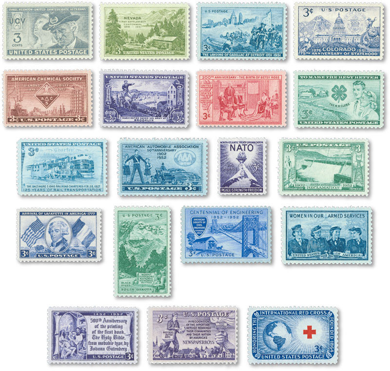 YS1951-52C – 1951-52 Commemorative Stamp Year Set, 19 stamps
