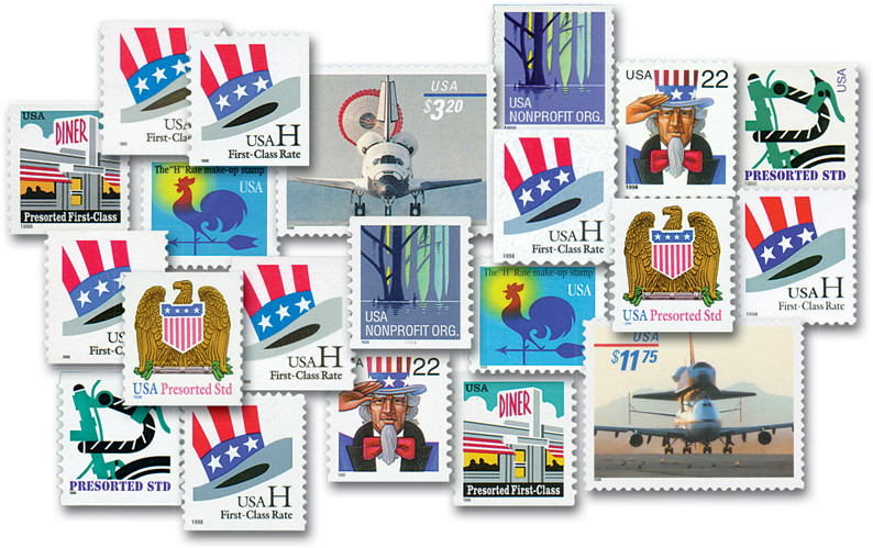 • $11.75 Piggyback Space Shuttle Express Mail stamp – issued to pay the new half-pound rate for express mail delivery.
