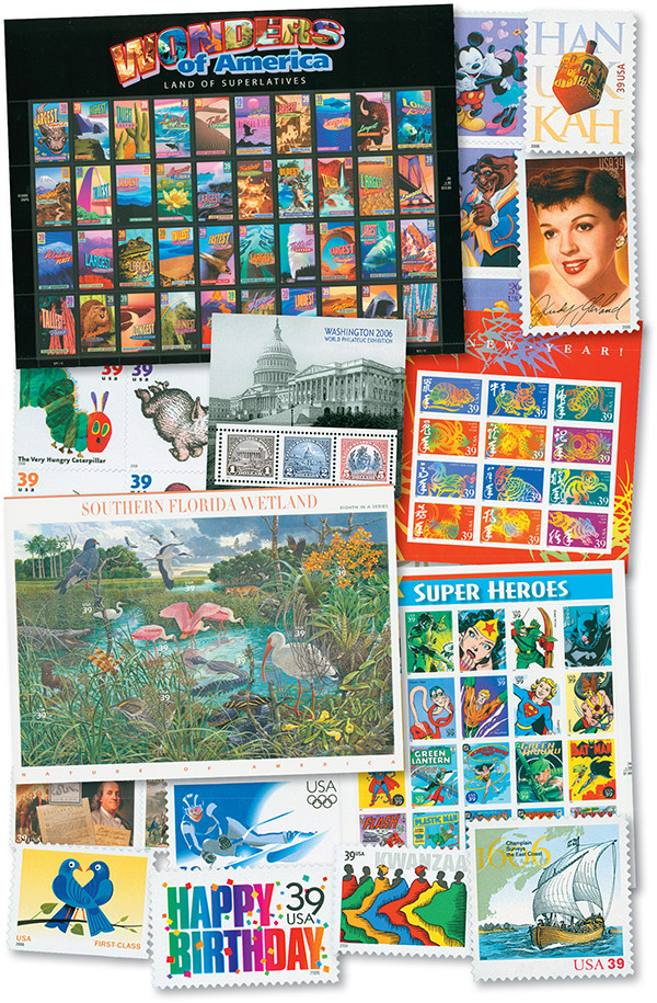Save time and money with this year-set. You’ll receive every US commemorative stamp (with a major Scott number) issued in 2006 in one order. This includes the Chinese New Year, Wonders of America, and Nature of America: Southern Florida Wetlands Sheets plus more, It’s the easy way to keep your collection up to date. Includes 162 mint stamps total, all illustrated in the American Heirloom album, volume III.