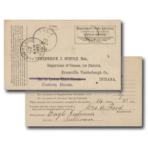 MRS1821 – 1890 Department of the Interior Census Office Card