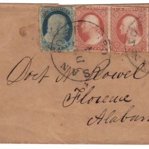 MRS1835 – 1851 3c Orange Brown Washington (#10A) on Cover to Florence, AL