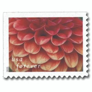 5994 – 2025 First-Class Forever Stamp – Dahlias: Red and Yellow Dahlia (from booklet)