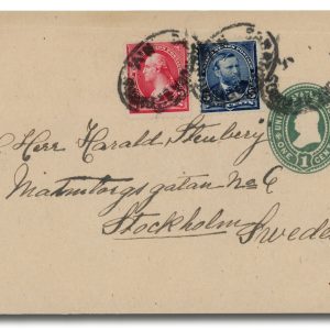 MRS1856 – 1898 2c Washington (#279B) and 5c Grant on Cover to Stockholm, Sweden