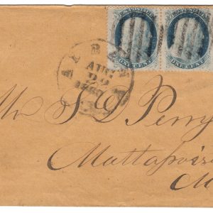 MRS1837 – 1857 1c Franklin Type V (#24) Attached strip of 3 on cover to Mattapoisett, MA