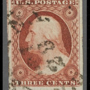 MRS502 – 1856 3c Brownish-Carmine Washington Used Sheet Margin Single