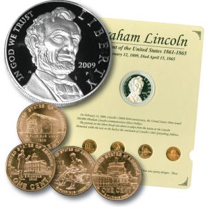 M11055 – Lincoln Proof Coin, Pennies (4), Binder and Coin Panel