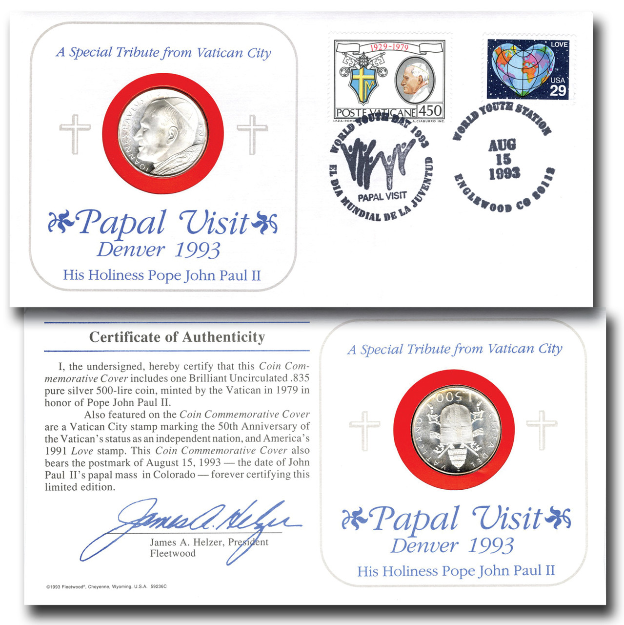 59236A – 1993 Pope Vatican Coin/Cover