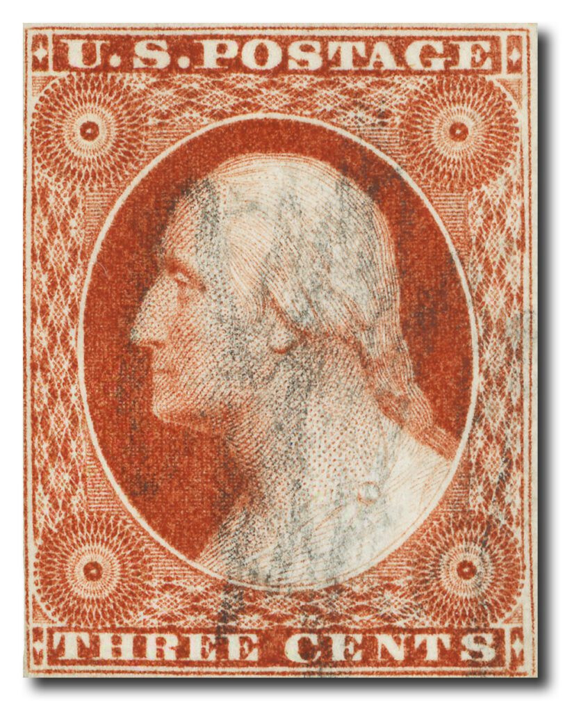 When the design for the 1851 3¢ Washington was created, some of the engraving plates used to print the stamps were re-cut, adding the inner frame line. These inner frame lines at the sides of the stamp distinguish #10A from #10, making it a major variety that wasn’t recognized by the Scott Catalogue until 2008!