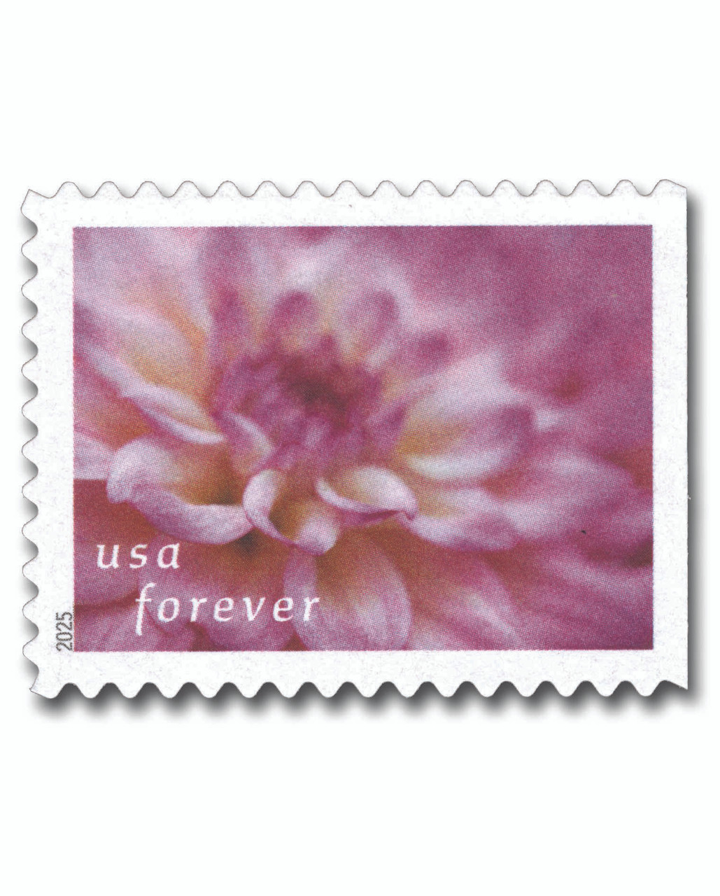 6001 – 2025 First-Class Forever Stamp – Dahlias: Lilac and White Dahlia (from booklet)