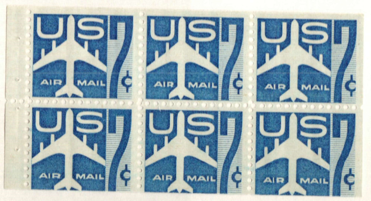 C51a – 1958 7c Jet Airliner, Blue, Booklet Pane of 6 Stamps