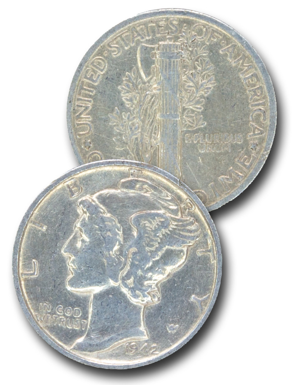 Mercury Head Dimes, officially called Winged Liberty Head Dimes, were produced for almost 30 years. Known for the beauty of their design, they are favorites with collectors. Now you can own one of these coins, composed of 90% silver and 10% copper.