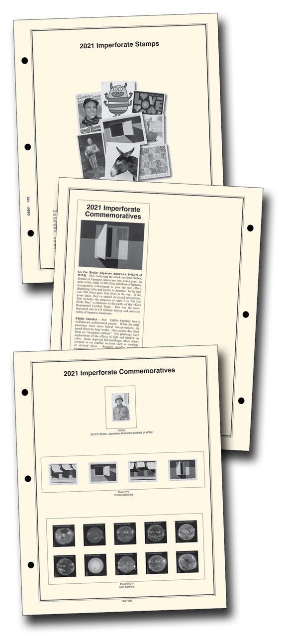 - Supplement includes 18 fully illustrated pages, complete with Scott numbers for the 2021 US imperforate stamps