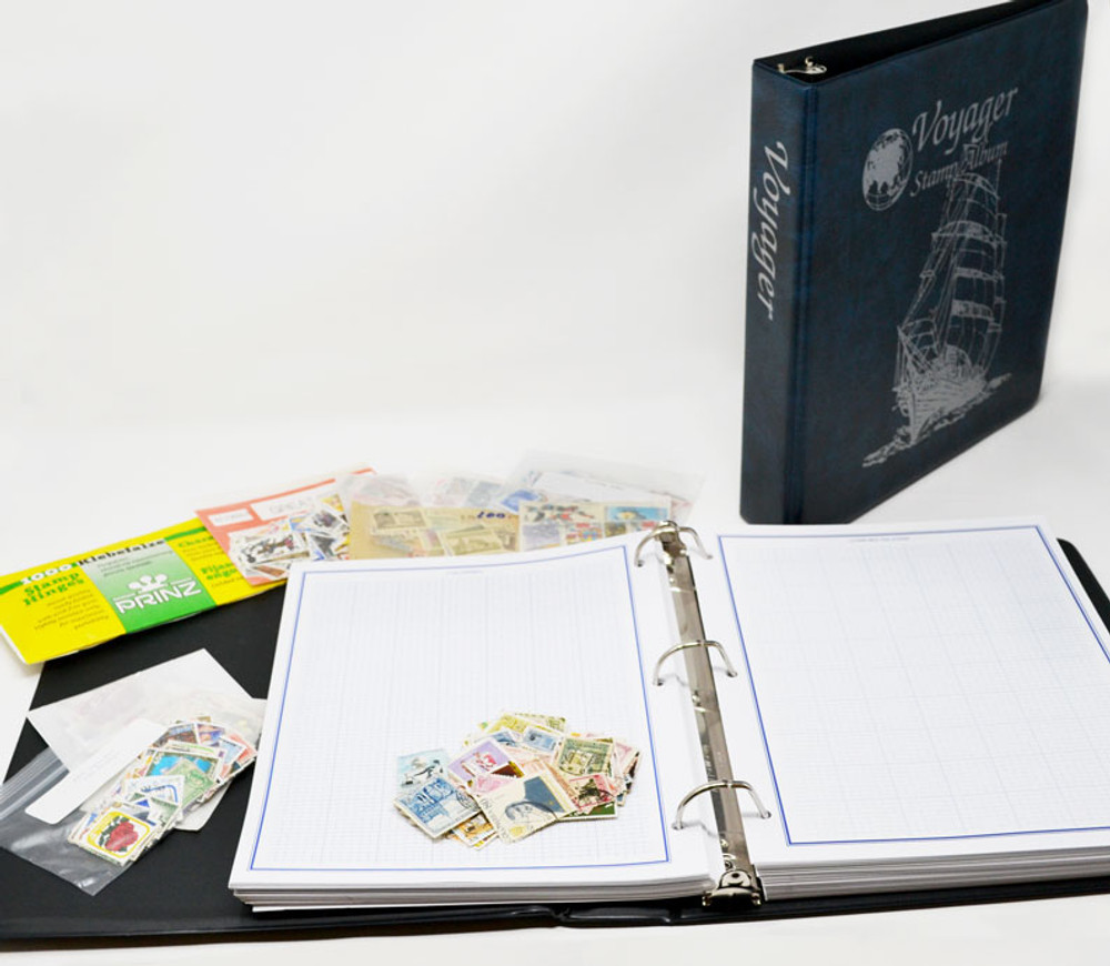 M270 - 1000 Worldwide Stamps Collection with FREE 2-Volume Voyager Album and 1000 Hinges quantity