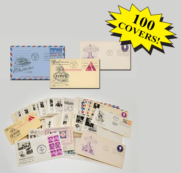Covers may vary, but that’s half the fun. Some of the stamps I saw in my collection of 100 covers honored the American flag, Alexander Hamilton, Religious Freedom, Overland Mail, NATO, and more. Order your collection today.