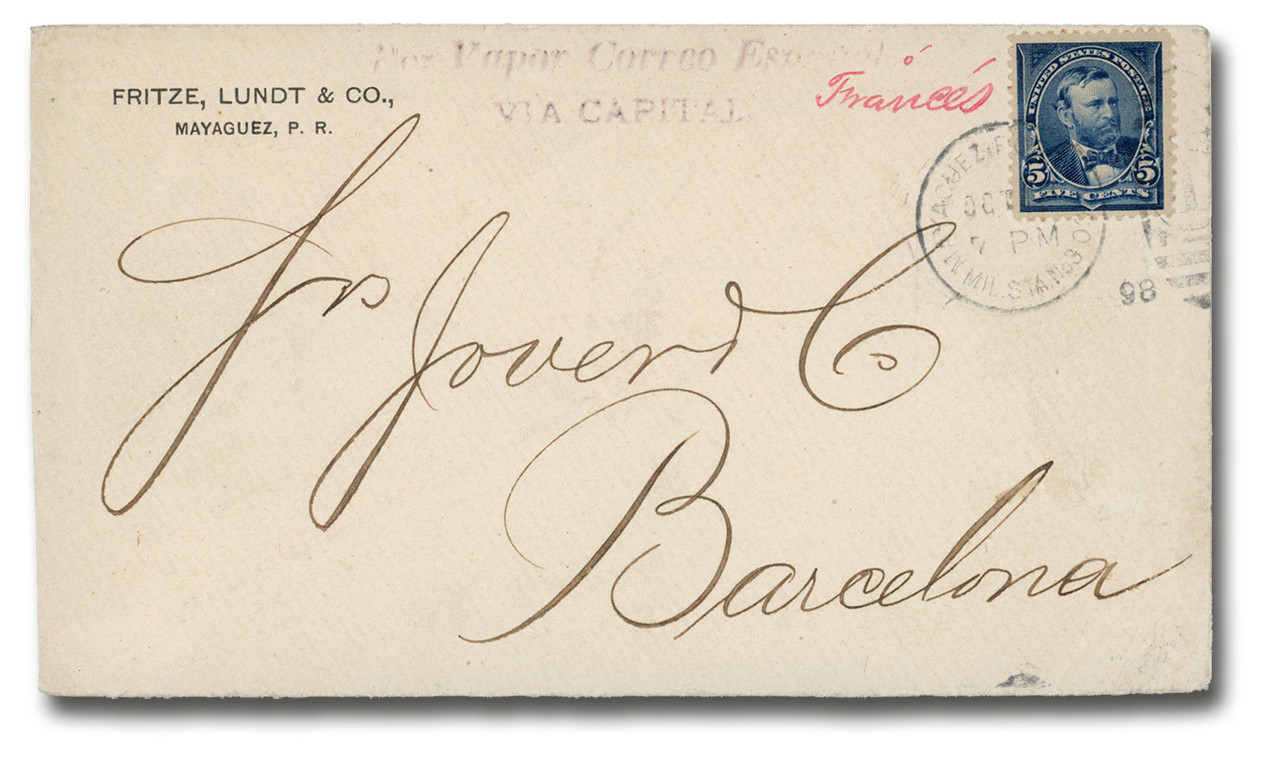 1898 Cover to Barcelona, Spain, from Mayaguez, Puerto Rico, via France.
