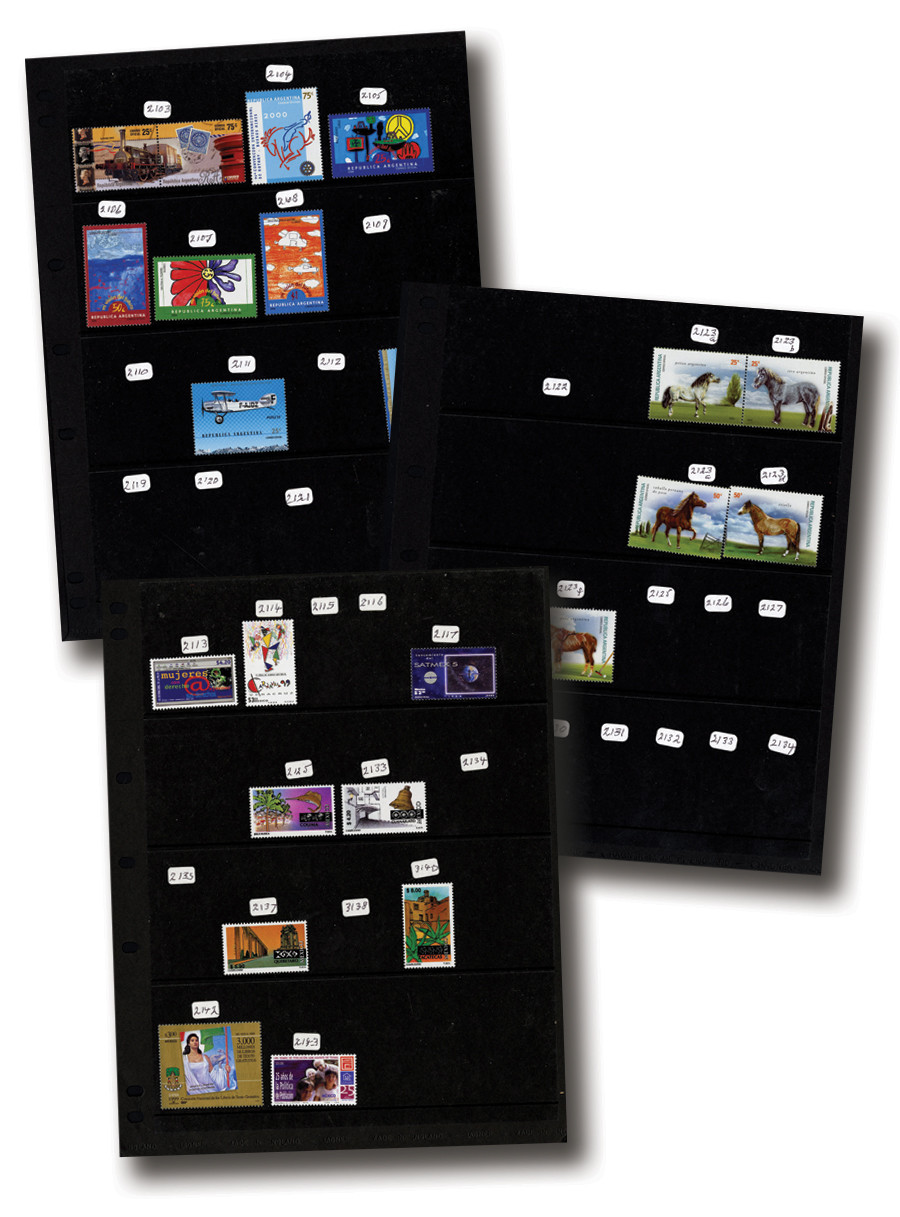 75+ mint Mexico stamps, 1999-2000. Includes some Chile and Argentina stamps. In stock pages. Scott Catalogue value $126.
