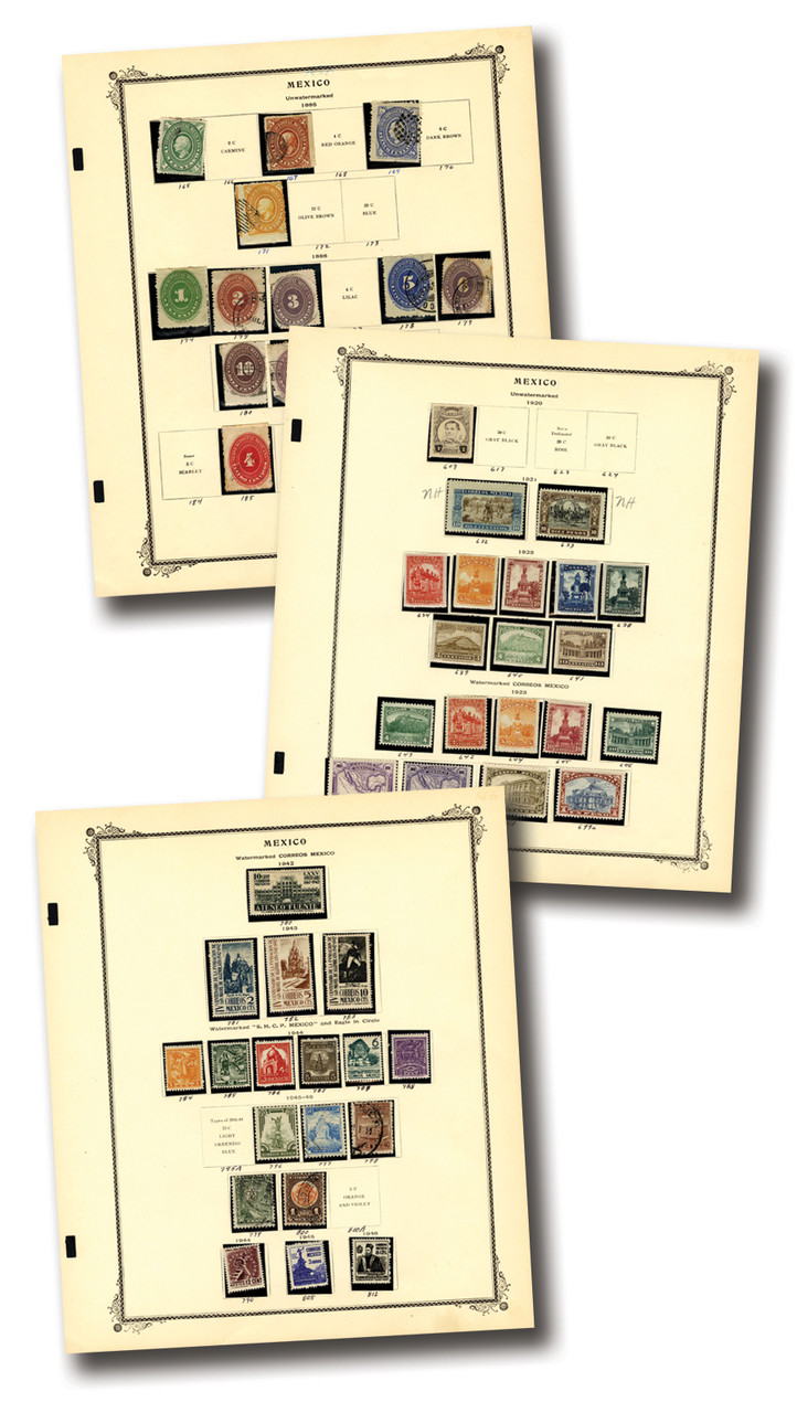 1,000+ mint and used Mexico stamps, 1856-1978. On 100 album pages. Scott Catalogue value $5,627.