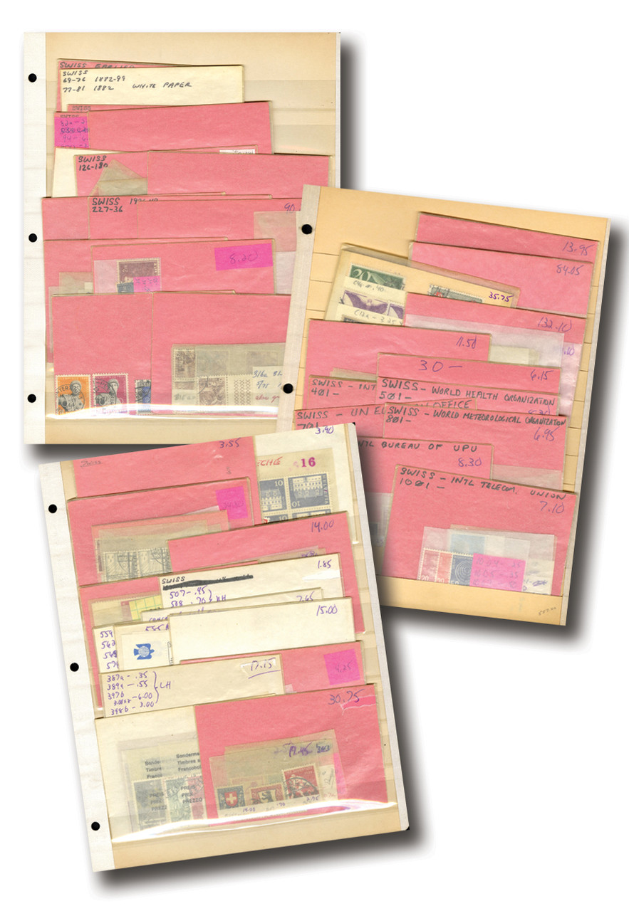 200+ Switzerland stamps, 1862-1974. In stock pages and glassines. Scott Catalogue value $1,027.