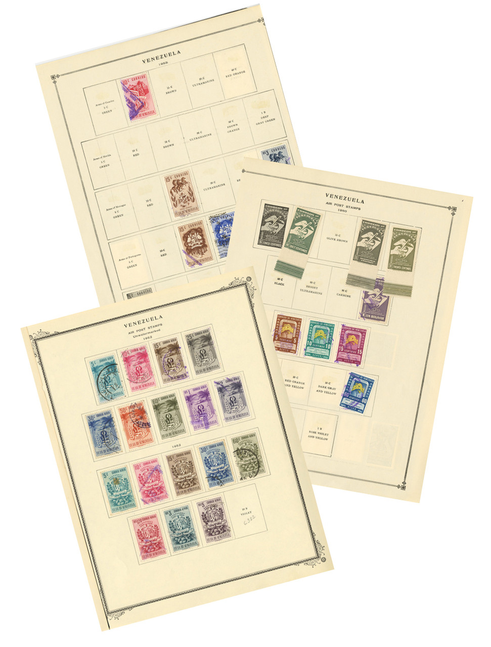 Over 600 mint and used Venezuela stamps, issued between 1952 and 1959. In album pages.