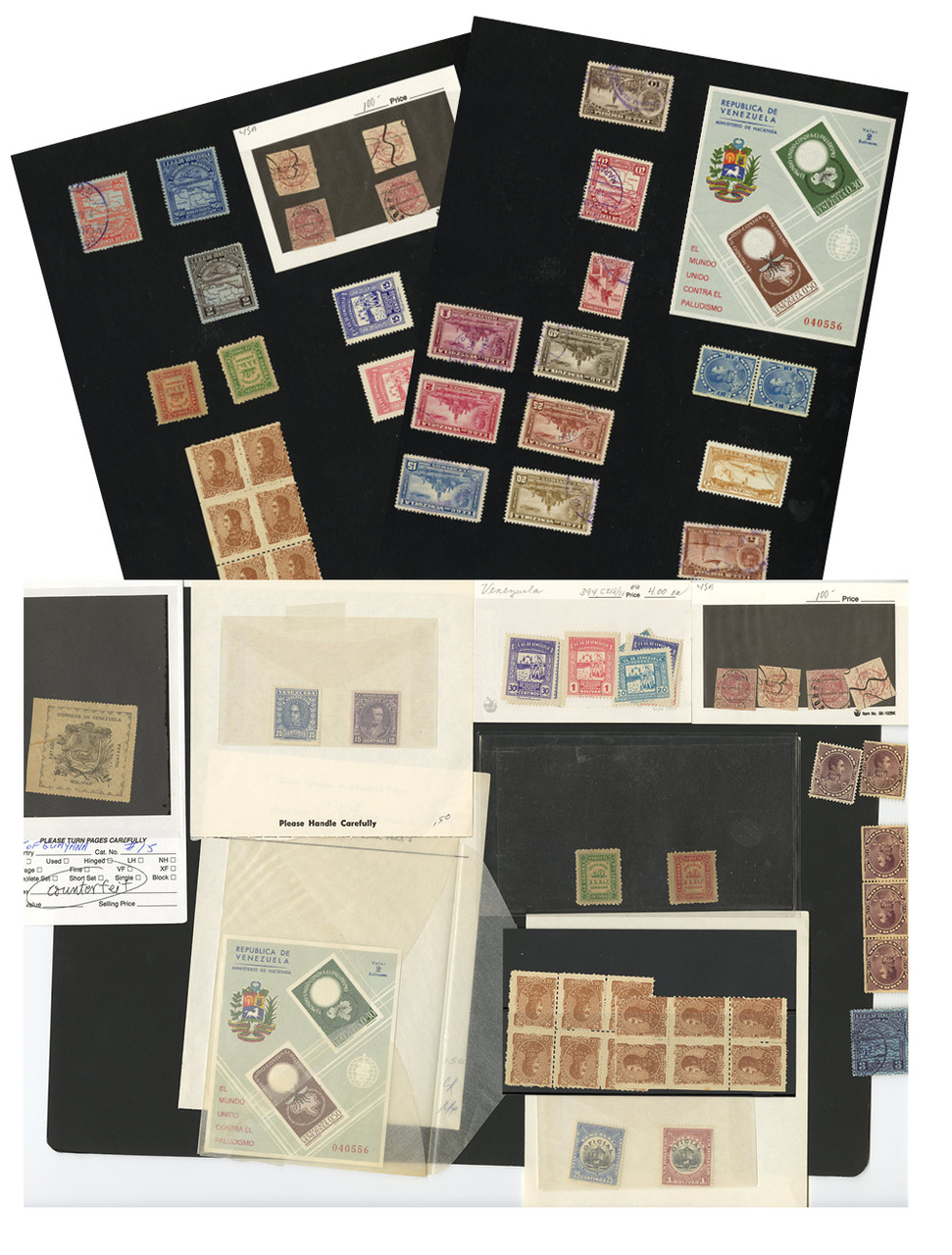 Approximately 125 mint and used Venezuela stamps, issued between 1875 and 1946. In mylar cards and glassines.