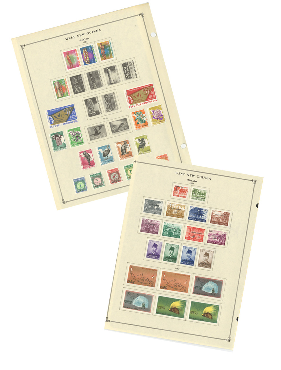 40 stamps from West Irian, in present-day Papua, New Guinea. Issued 1963. In Scott album pages with interleavings.